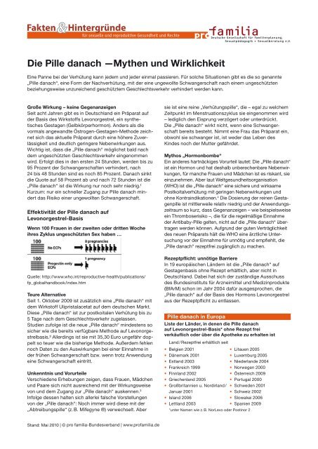Die Pille Danach A Mythen Und Wirklichkeit Pro Familia